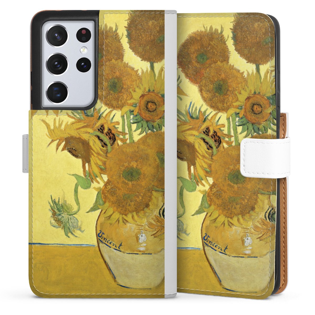 For our Sideflip Case we are using our advanced direct printing technology. The back and frontside are fully printabale, the inside of the phone bag is left unprinted. You can order the phone case without print, printed completely or also with a partial print.