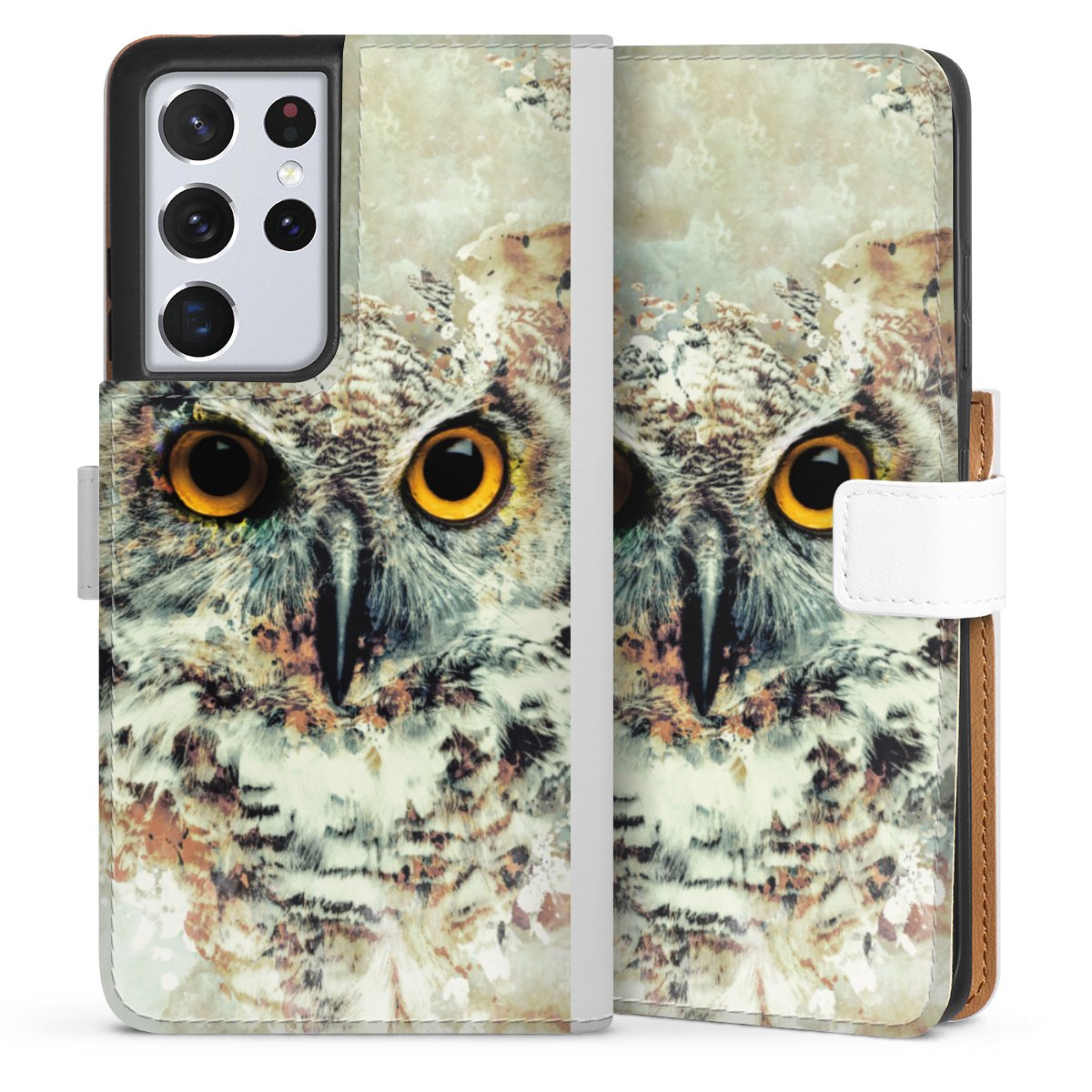 For our Sideflip Case we are using our advanced direct printing technology. The back and frontside are fully printabale, the inside of the phone bag is left unprinted. You can order the phone case without print, printed completely or also with a partial print.
