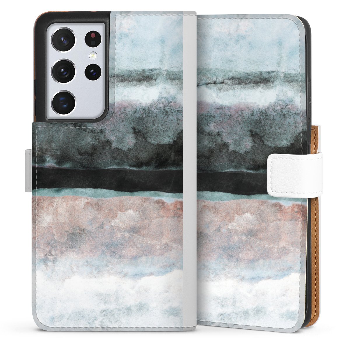 For our Sideflip Case we are using our advanced direct printing technology. The back and frontside are fully printabale, the inside of the phone bag is left unprinted. You can order the phone case without print, printed completely or also with a partial print.