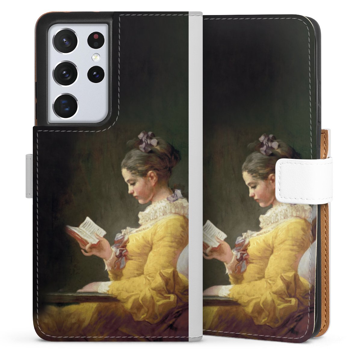 For our Sideflip Case we are using our advanced direct printing technology. The back and frontside are fully printabale, the inside of the phone bag is left unprinted. You can order the phone case without print, printed completely or also with a partial print.