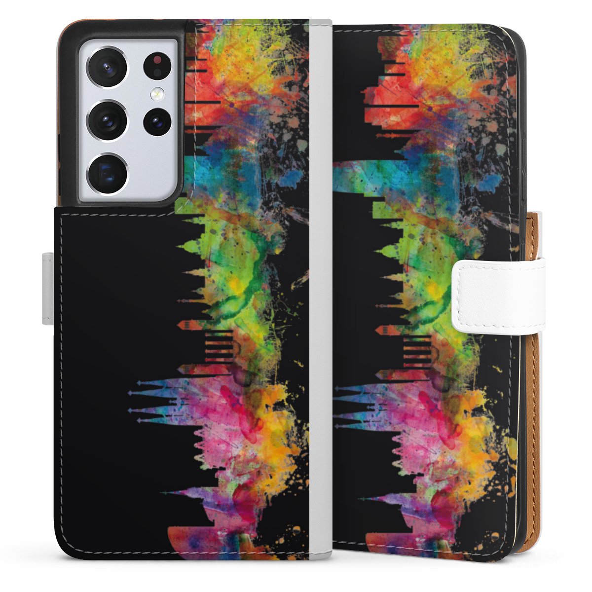 For our Sideflip Case we are using our advanced direct printing technology. The back and frontside are fully printabale, the inside of the phone bag is left unprinted. You can order the phone case without print, printed completely or also with a partial print.