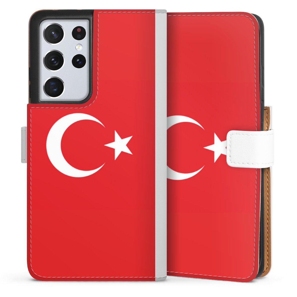 For our Sideflip Case we are using our advanced direct printing technology. The back and frontside are fully printabale, the inside of the phone bag is left unprinted. You can order the phone case without print, printed completely or also with a partial print.