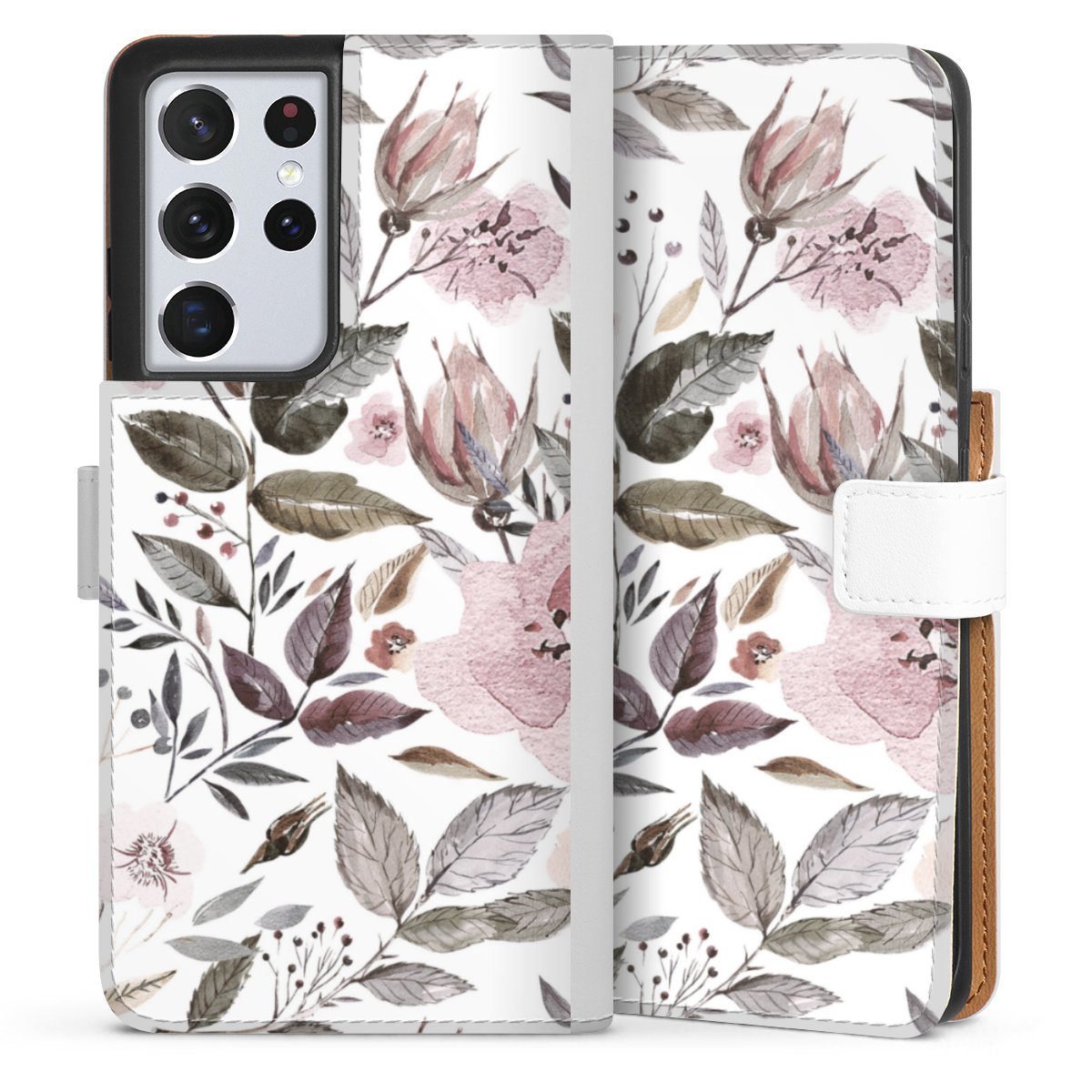 For our Sideflip Case we are using our advanced direct printing technology. The back and frontside are fully printabale, the inside of the phone bag is left unprinted. You can order the phone case without print, printed completely or also with a partial print.