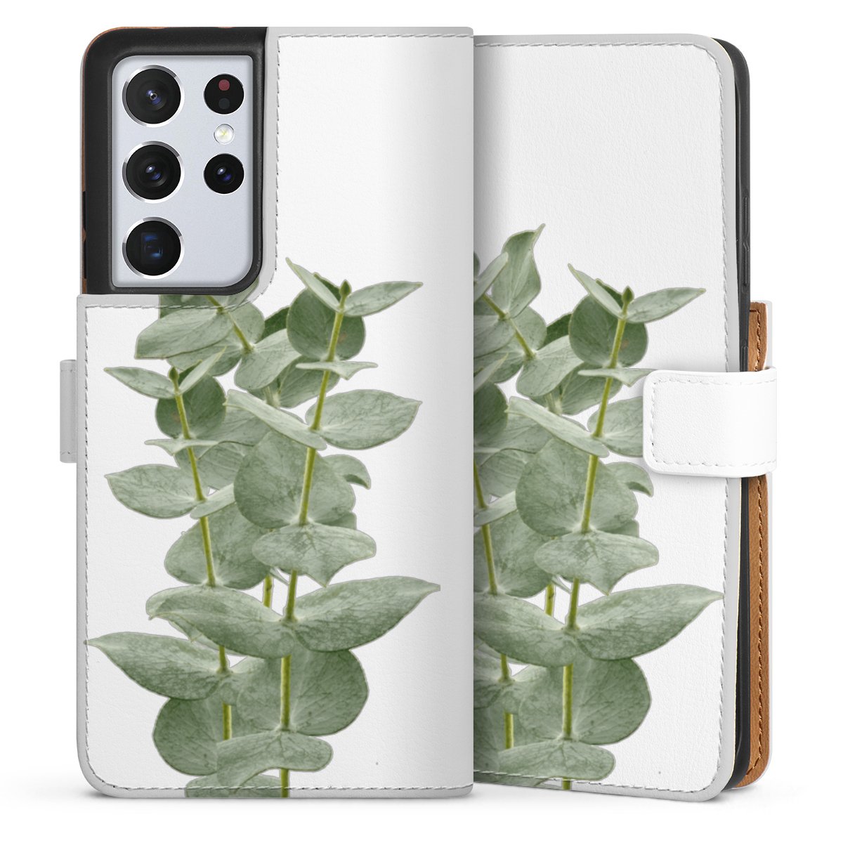 For our Sideflip Case we are using our advanced direct printing technology. The back and frontside are fully printabale, the inside of the phone bag is left unprinted. You can order the phone case without print, printed completely or also with a partial print.