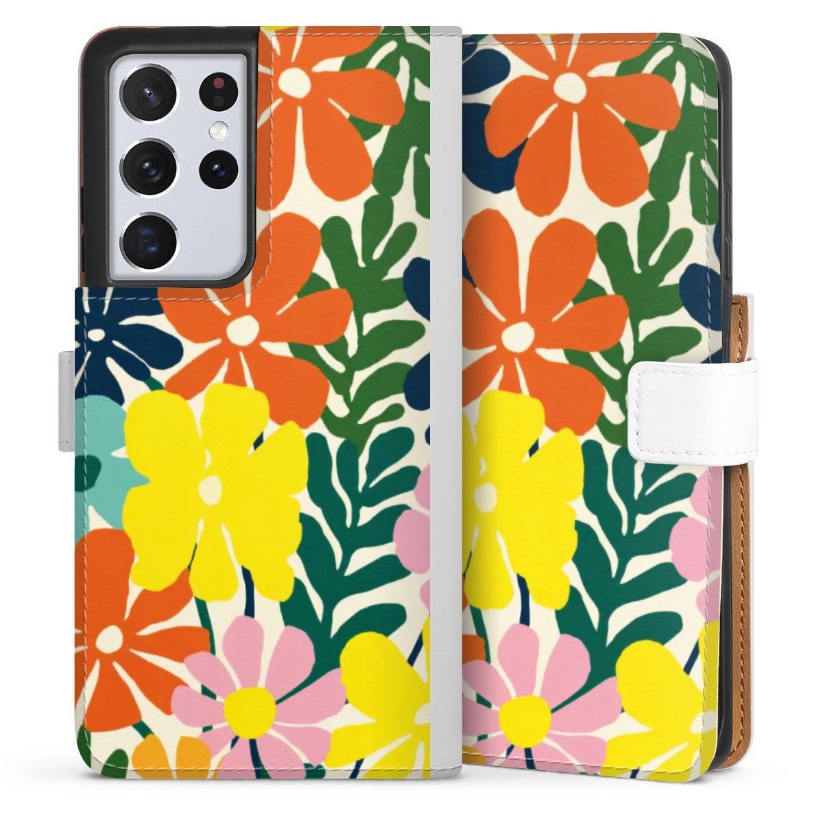 For our Sideflip Case we are using our advanced direct printing technology. The back and frontside are fully printabale, the inside of the phone bag is left unprinted. You can order the phone case without print, printed completely or also with a partial print.