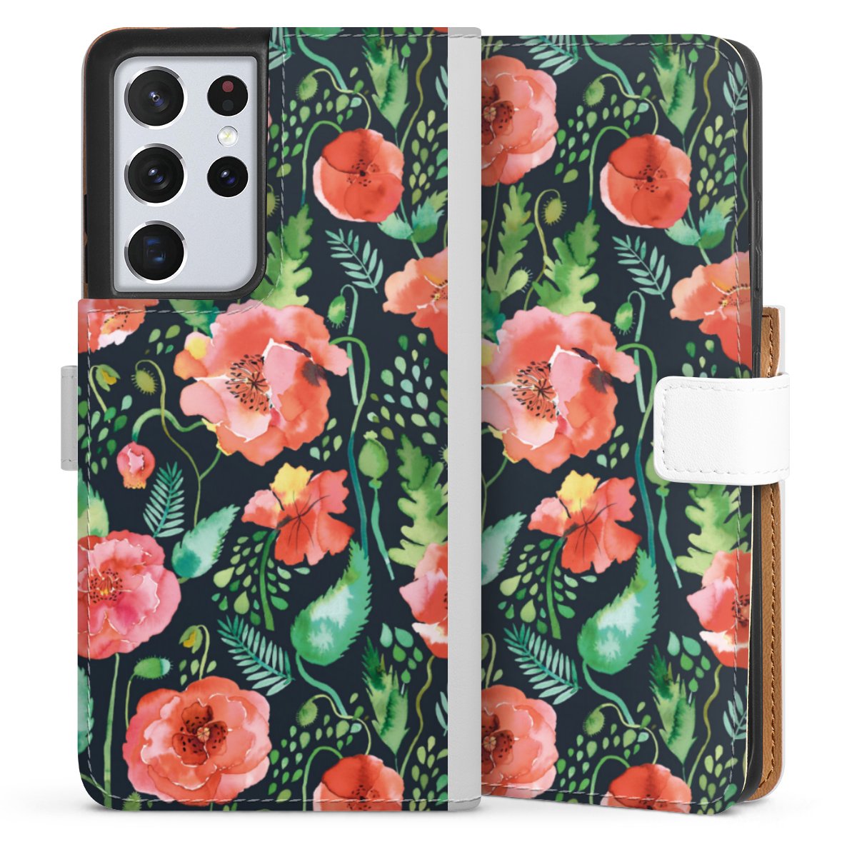 For our Sideflip Case we are using our advanced direct printing technology. The back and frontside are fully printabale, the inside of the phone bag is left unprinted. You can order the phone case without print, printed completely or also with a partial print.