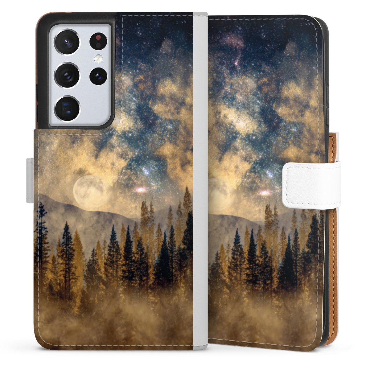 For our Sideflip Case we are using our advanced direct printing technology. The back and frontside are fully printabale, the inside of the phone bag is left unprinted. You can order the phone case without print, printed completely or also with a partial print.