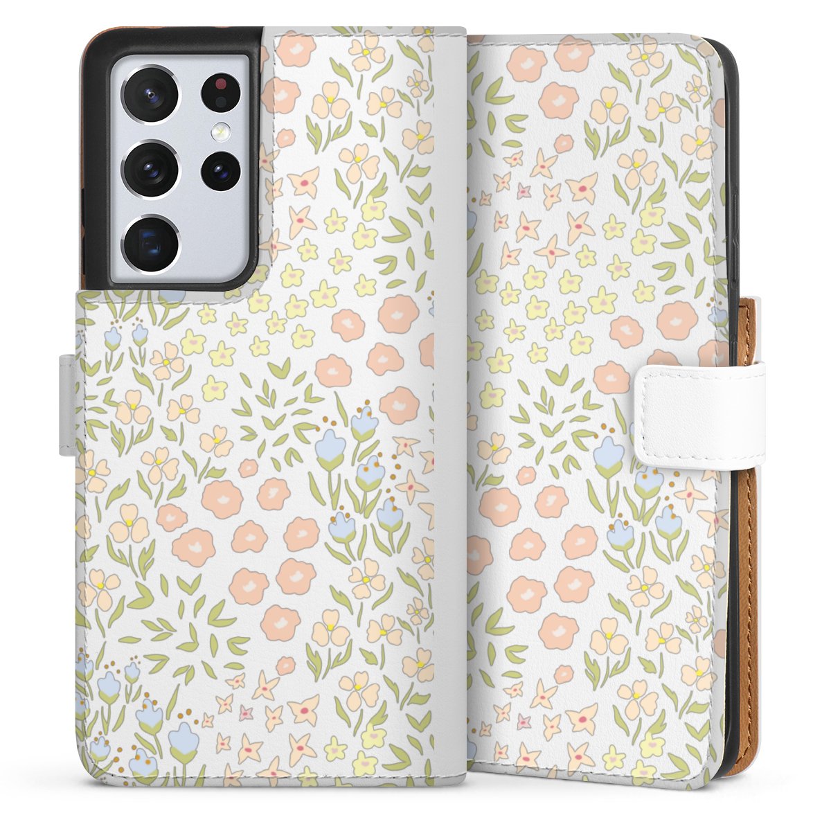 For our Sideflip Case we are using our advanced direct printing technology. The back and frontside are fully printabale, the inside of the phone bag is left unprinted. You can order the phone case without print, printed completely or also with a partial print.