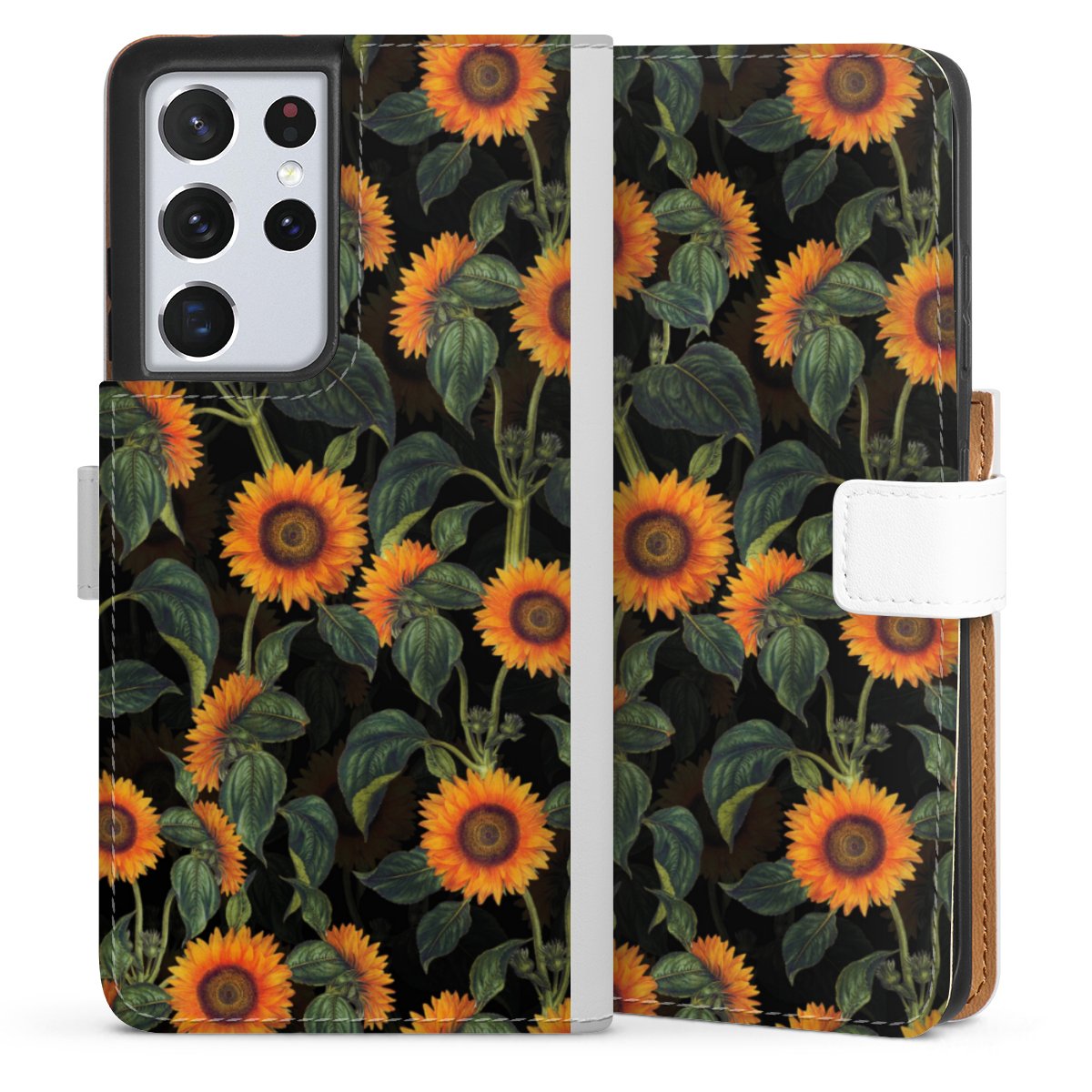 For our Sideflip Case we are using our advanced direct printing technology. The back and frontside are fully printabale, the inside of the phone bag is left unprinted. You can order the phone case without print, printed completely or also with a partial print.