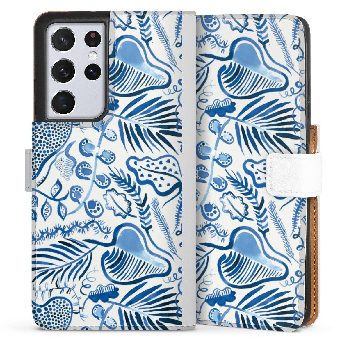 For our Sideflip Case we are using our advanced direct printing technology. The back and frontside are fully printabale, the inside of the phone bag is left unprinted. You can order the phone case without print, printed completely or also with a partial print.