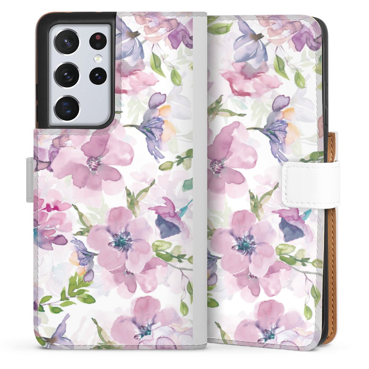 For our Sideflip Case we are using our advanced direct printing technology. The back and frontside are fully printabale, the inside of the phone bag is left unprinted. You can order the phone case without print, printed completely or also with a partial print.