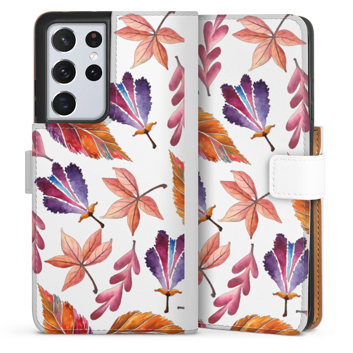 For our Sideflip Case we are using our advanced direct printing technology. The back and frontside are fully printabale, the inside of the phone bag is left unprinted. You can order the phone case without print, printed completely or also with a partial print.