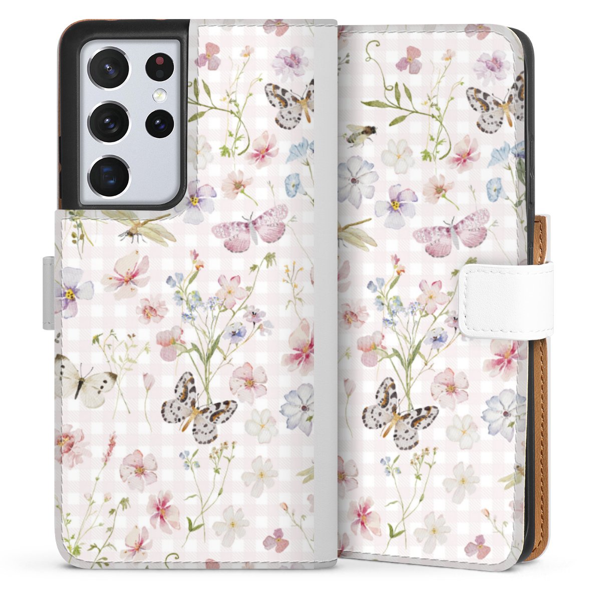 For our Sideflip Case we are using our advanced direct printing technology. The back and frontside are fully printabale, the inside of the phone bag is left unprinted. You can order the phone case without print, printed completely or also with a partial print.