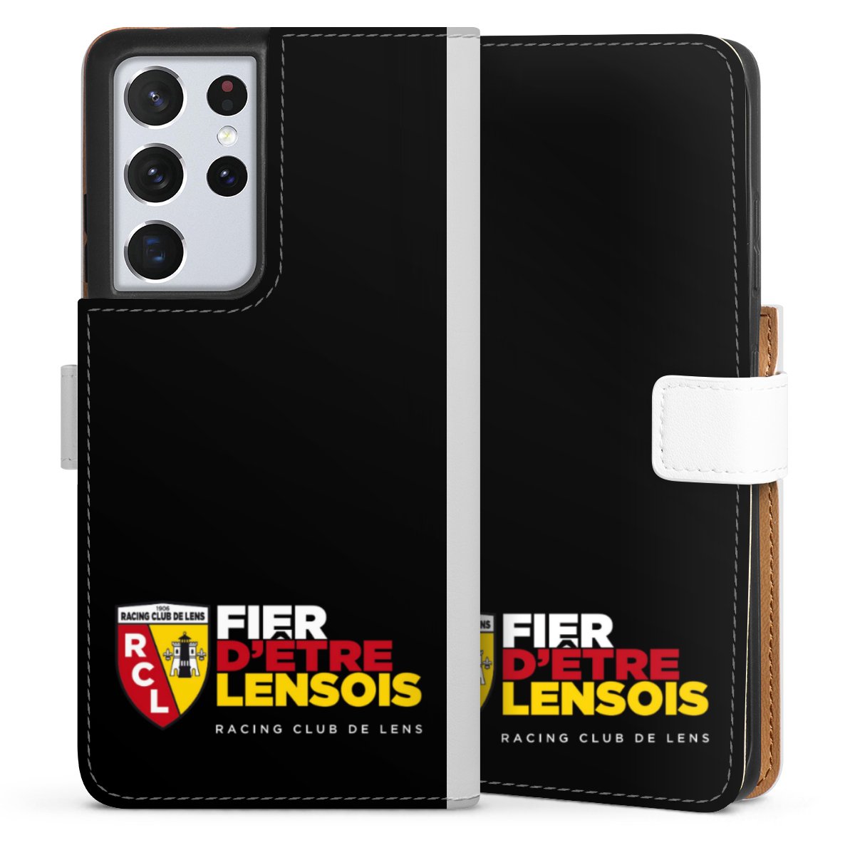 For our Sideflip Case we are using our advanced direct printing technology. The back and frontside are fully printabale, the inside of the phone bag is left unprinted. You can order the phone case without print, printed completely or also with a partial print.
