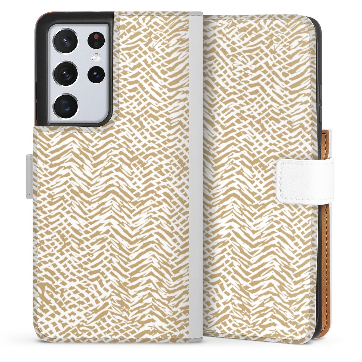 For our Sideflip Case we are using our advanced direct printing technology. The back and frontside are fully printabale, the inside of the phone bag is left unprinted. You can order the phone case without print, printed completely or also with a partial print.