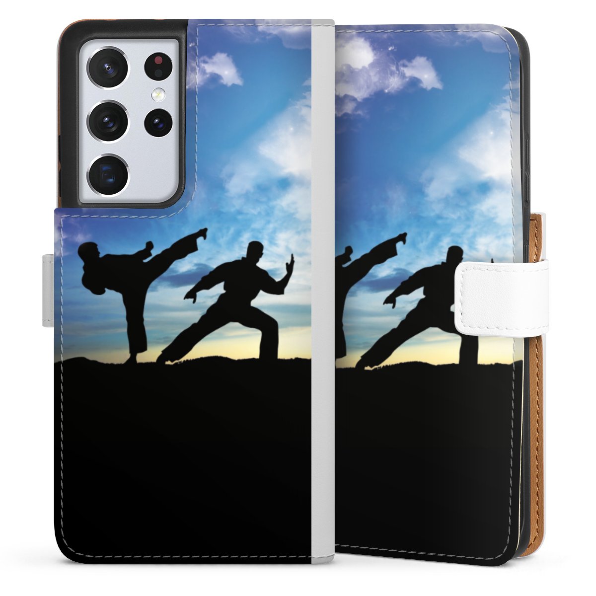 For our Sideflip Case we are using our advanced direct printing technology. The back and frontside are fully printabale, the inside of the phone bag is left unprinted. You can order the phone case without print, printed completely or also with a partial print.
