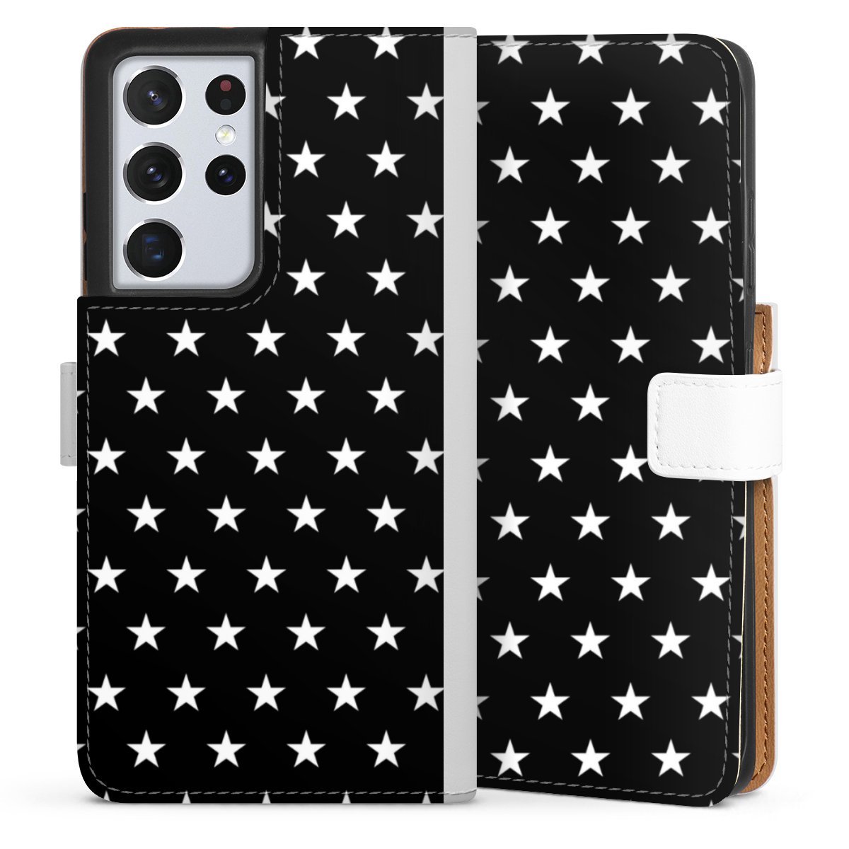 For our Sideflip Case we are using our advanced direct printing technology. The back and frontside are fully printabale, the inside of the phone bag is left unprinted. You can order the phone case without print, printed completely or also with a partial print.