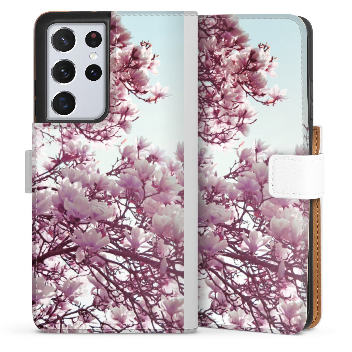For our Sideflip Case we are using our advanced direct printing technology. The back and frontside are fully printabale, the inside of the phone bag is left unprinted. You can order the phone case without print, printed completely or also with a partial print.