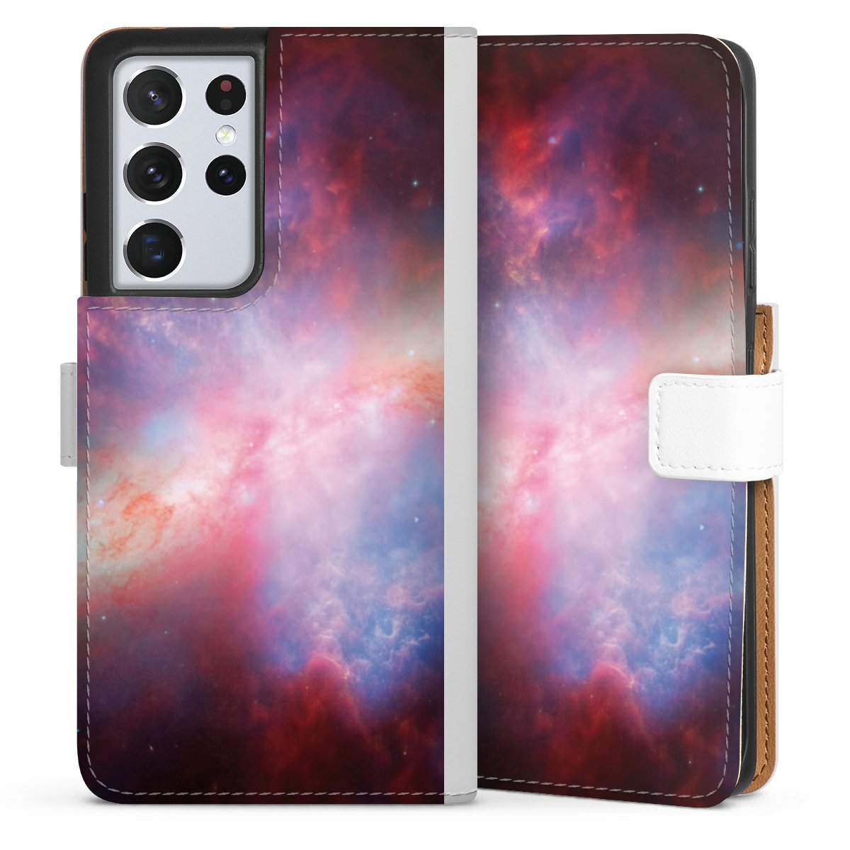 For our Sideflip Case we are using our advanced direct printing technology. The back and frontside are fully printabale, the inside of the phone bag is left unprinted. You can order the phone case without print, printed completely or also with a partial print.