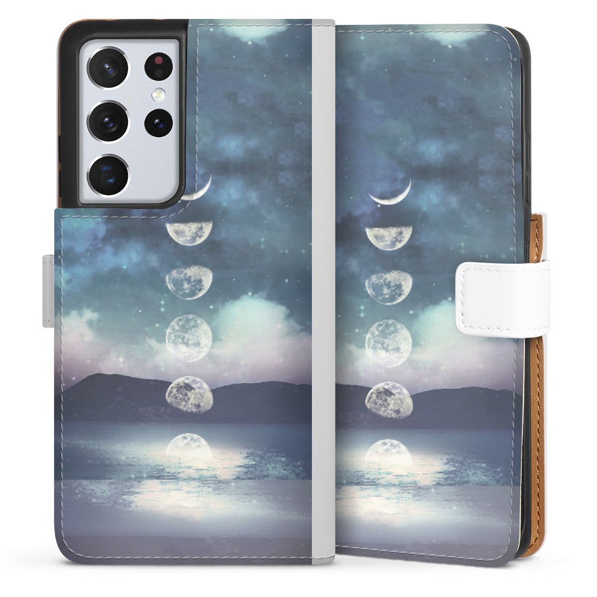 For our Sideflip Case we are using our advanced direct printing technology. The back and frontside are fully printabale, the inside of the phone bag is left unprinted. You can order the phone case without print, printed completely or also with a partial print.