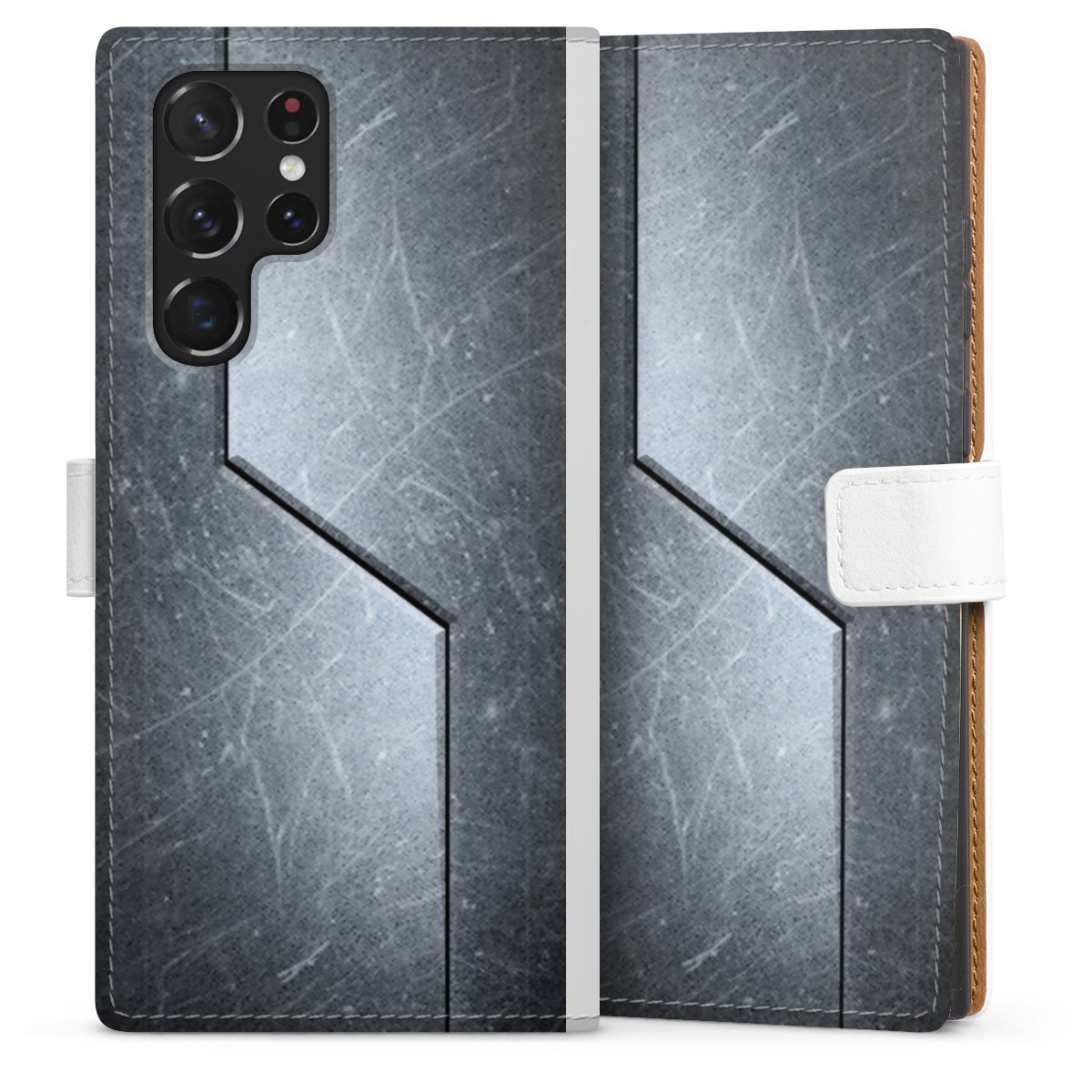 For our Sideflip Case we are using our advanced direct printing technology. The back and frontside are fully printabale, the inside of the phone bag is left unprinted. You can order the phone case without print, printed completely or also with a partial print.