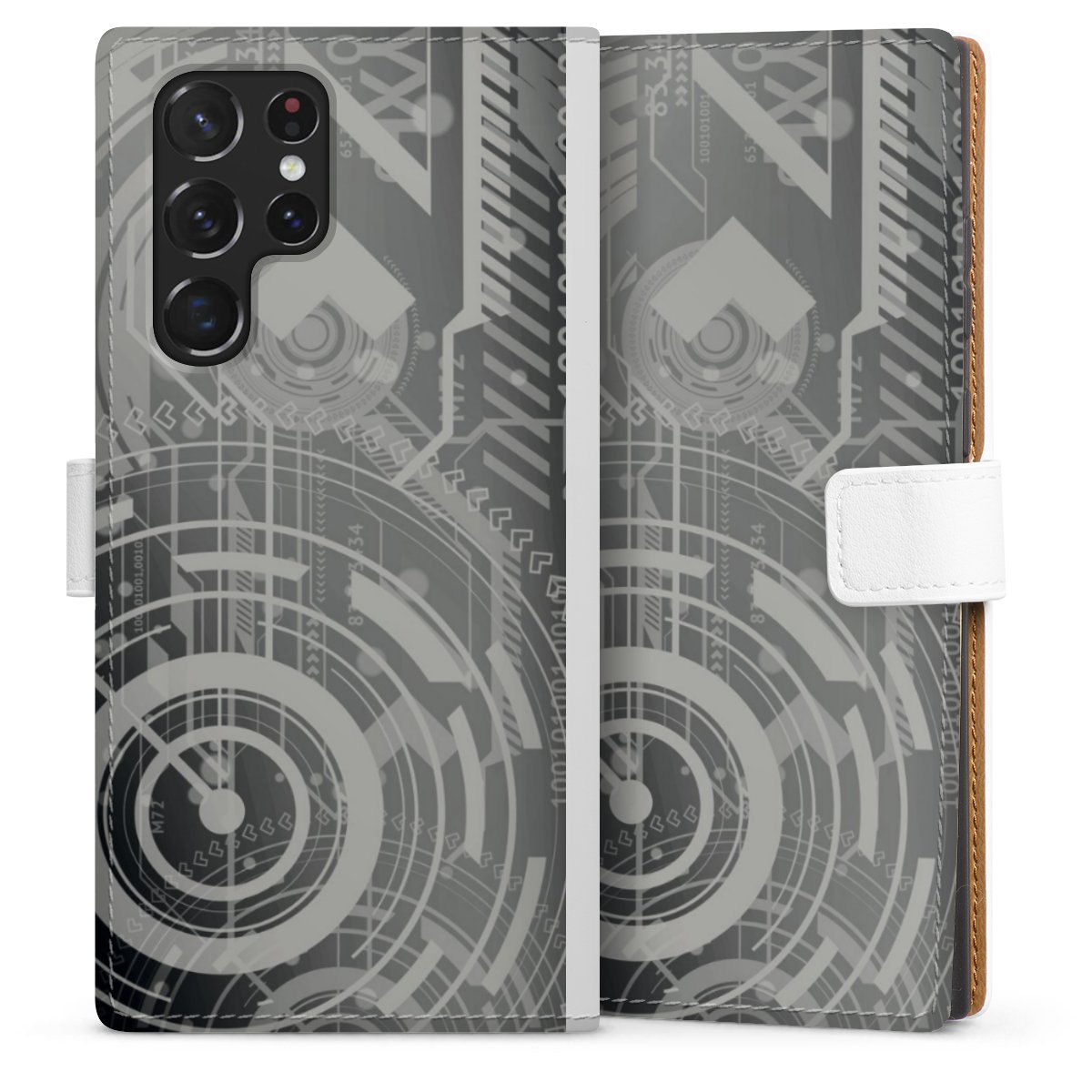 For our Sideflip Case we are using our advanced direct printing technology. The back and frontside are fully printabale, the inside of the phone bag is left unprinted. You can order the phone case without print, printed completely or also with a partial print.