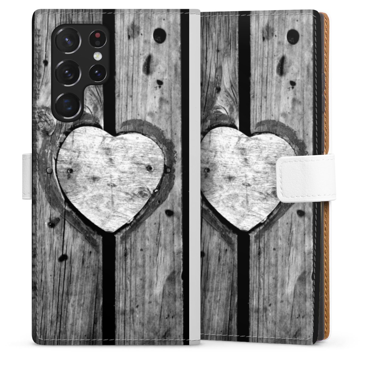 For our Sideflip Case we are using our advanced direct printing technology. The back and frontside are fully printabale, the inside of the phone bag is left unprinted. You can order the phone case without print, printed completely or also with a partial print.