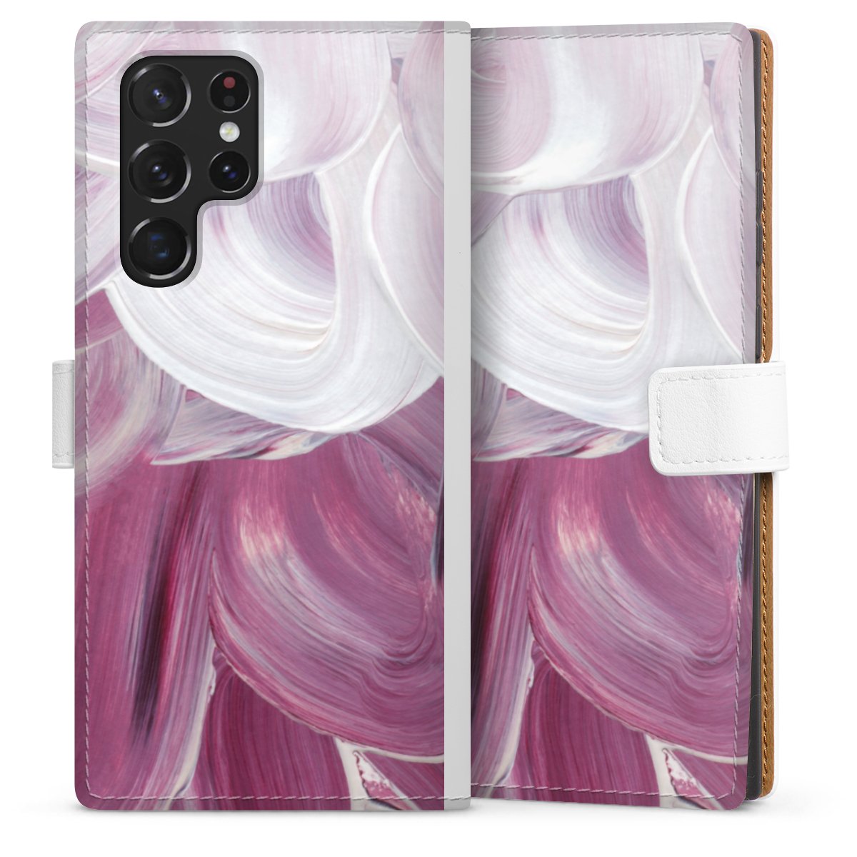 For our Sideflip Case we are using our advanced direct printing technology. The back and frontside are fully printabale, the inside of the phone bag is left unprinted. You can order the phone case without print, printed completely or also with a partial print.