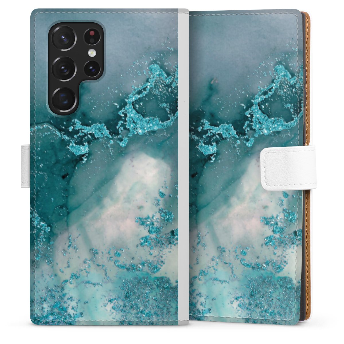 For our Sideflip Case we are using our advanced direct printing technology. The back and frontside are fully printabale, the inside of the phone bag is left unprinted. You can order the phone case without print, printed completely or also with a partial print.