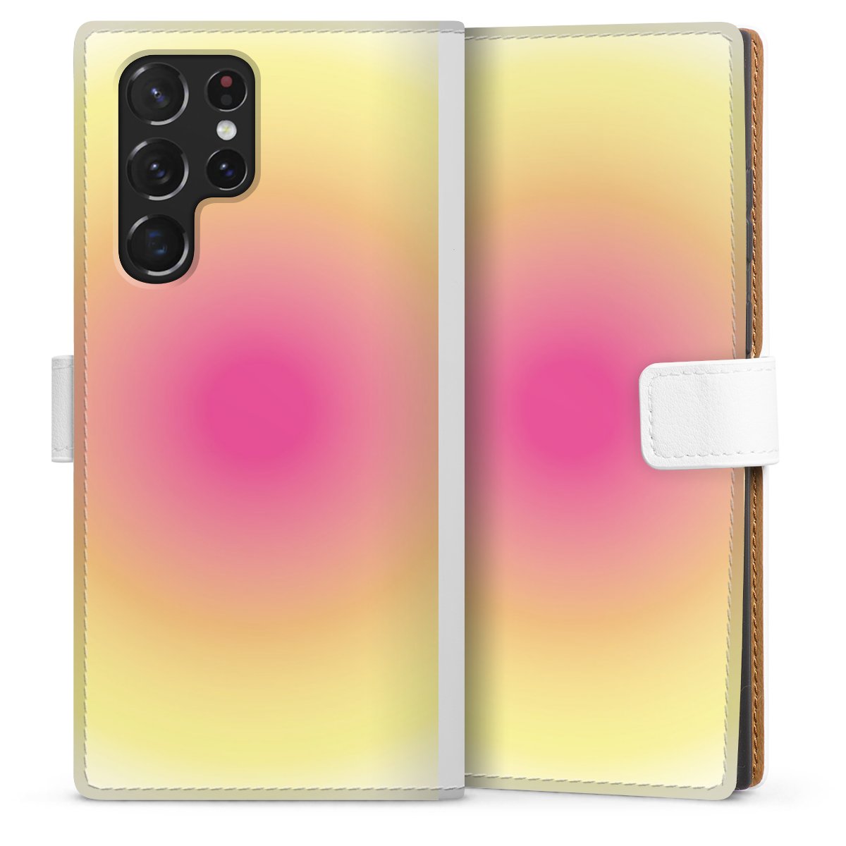 For our Sideflip Case we are using our advanced direct printing technology. The back and frontside are fully printabale, the inside of the phone bag is left unprinted. You can order the phone case without print, printed completely or also with a partial print.