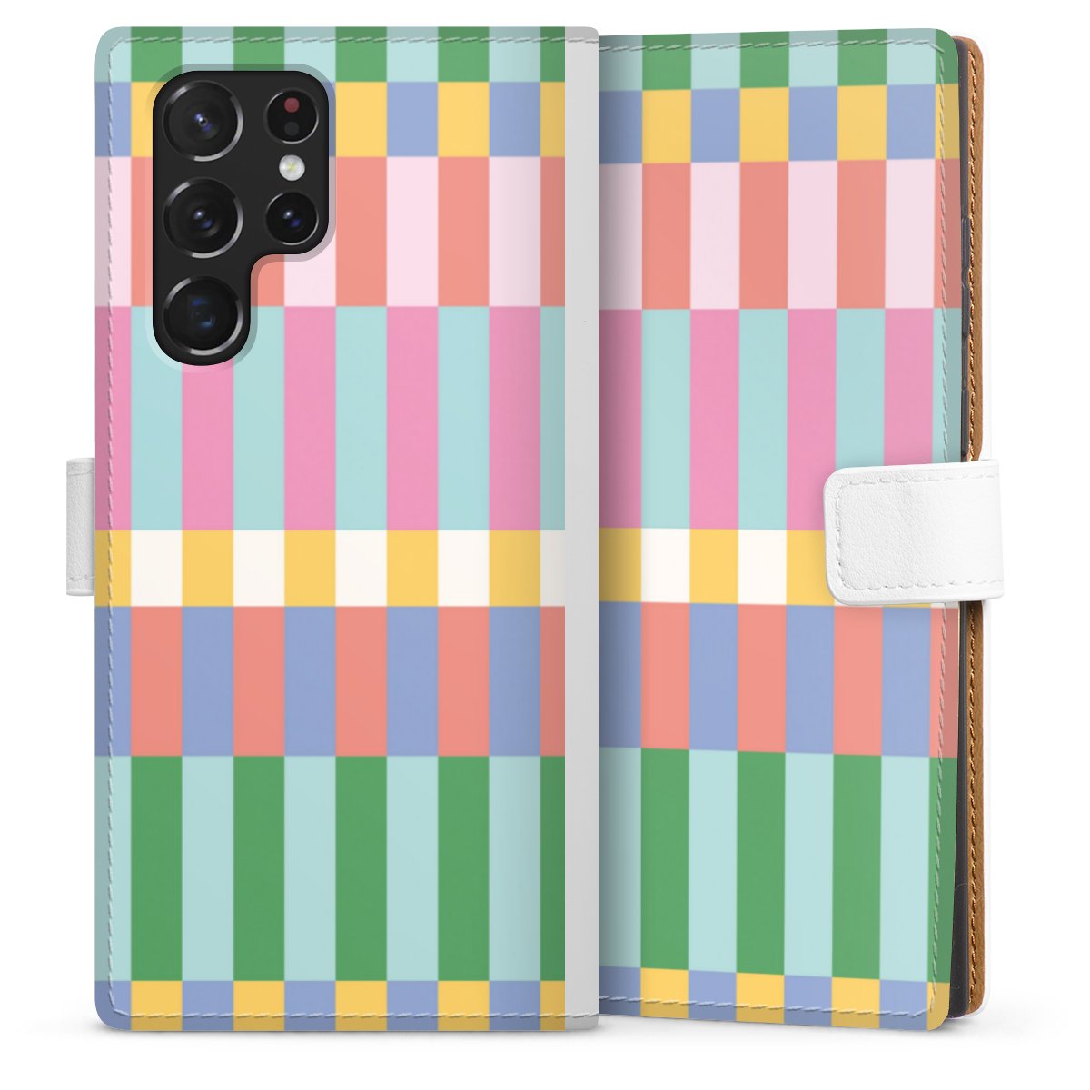 For our Sideflip Case we are using our advanced direct printing technology. The back and frontside are fully printabale, the inside of the phone bag is left unprinted. You can order the phone case without print, printed completely or also with a partial print.