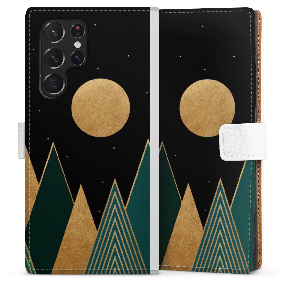 For our Sideflip Case we are using our advanced direct printing technology. The back and frontside are fully printabale, the inside of the phone bag is left unprinted. You can order the phone case without print, printed completely or also with a partial print.