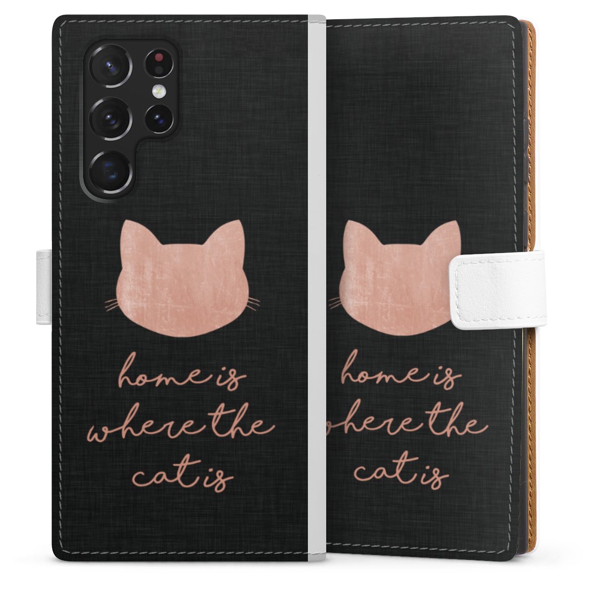 For our Sideflip Case we are using our advanced direct printing technology. The back and frontside are fully printabale, the inside of the phone bag is left unprinted. You can order the phone case without print, printed completely or also with a partial print.