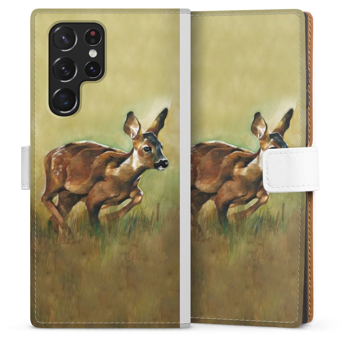For our Sideflip Case we are using our advanced direct printing technology. The back and frontside are fully printabale, the inside of the phone bag is left unprinted. You can order the phone case without print, printed completely or also with a partial print.