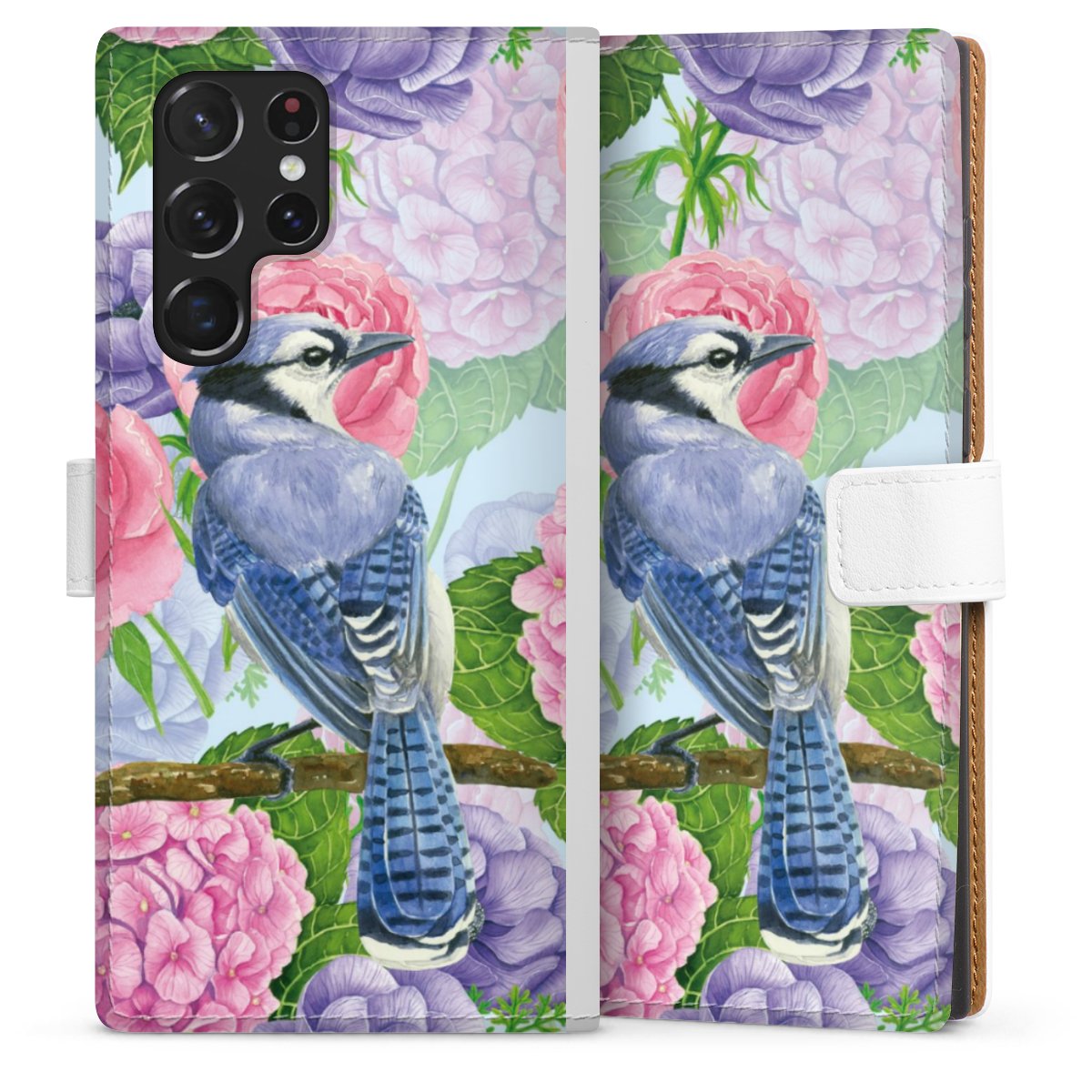 For our Sideflip Case we are using our advanced direct printing technology. The back and frontside are fully printabale, the inside of the phone bag is left unprinted. You can order the phone case without print, printed completely or also with a partial print.