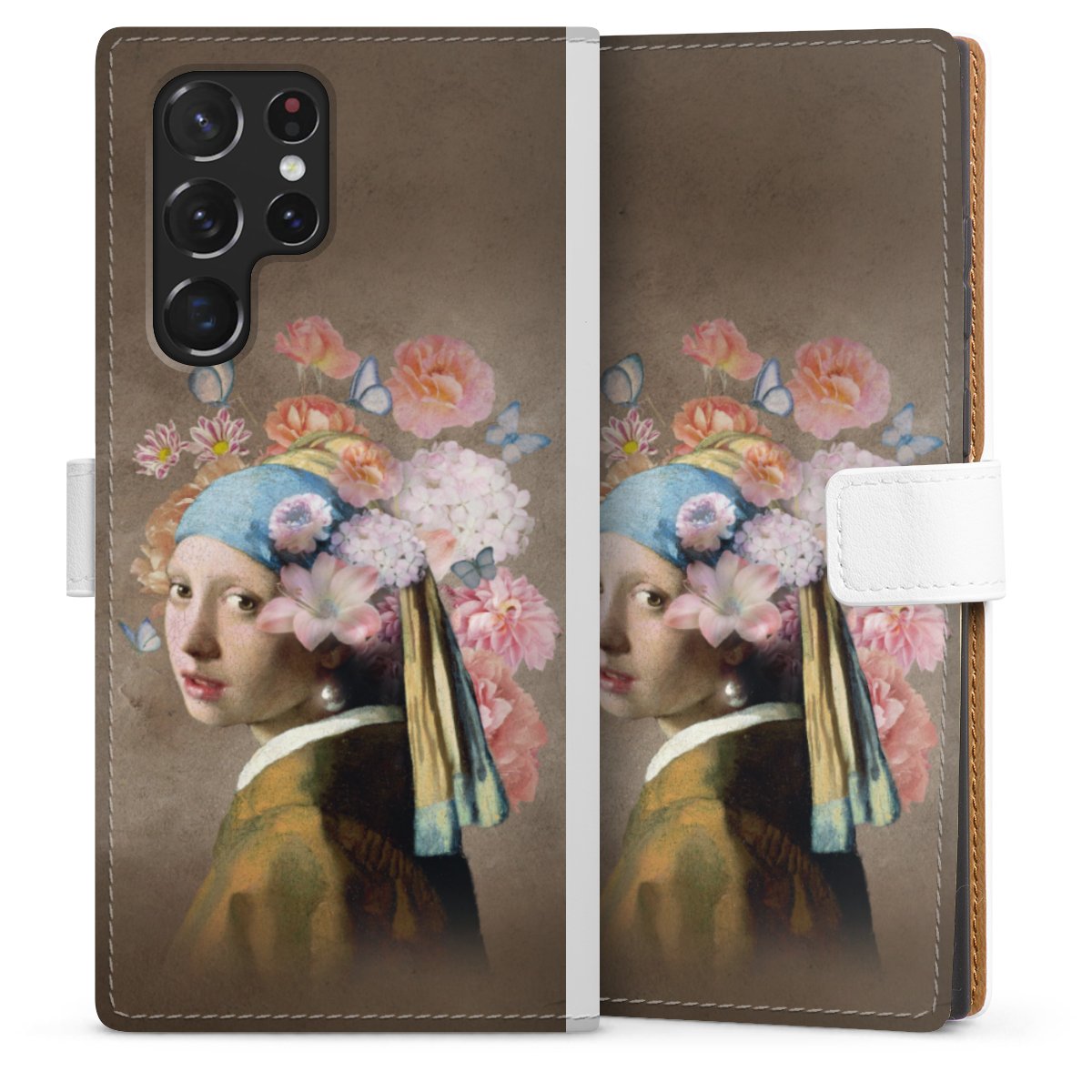 For our Sideflip Case we are using our advanced direct printing technology. The back and frontside are fully printabale, the inside of the phone bag is left unprinted. You can order the phone case without print, printed completely or also with a partial print.