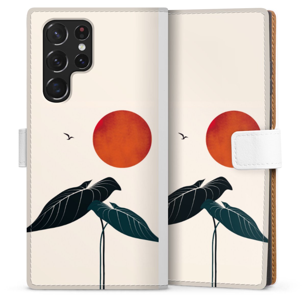 For our Sideflip Case we are using our advanced direct printing technology. The back and frontside are fully printabale, the inside of the phone bag is left unprinted. You can order the phone case without print, printed completely or also with a partial print.