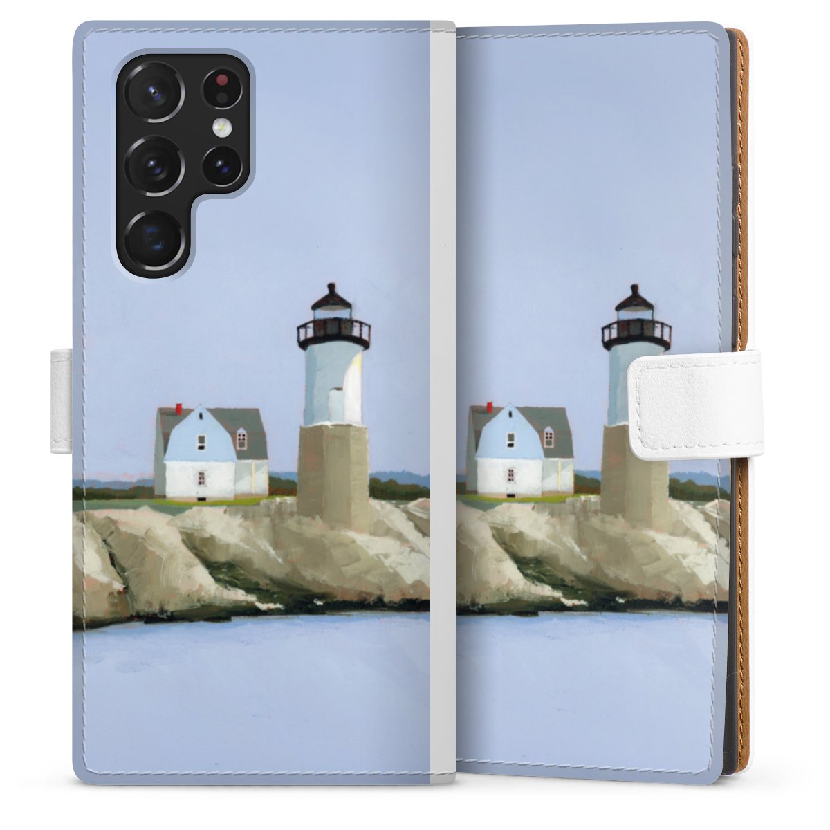 For our Sideflip Case we are using our advanced direct printing technology. The back and frontside are fully printabale, the inside of the phone bag is left unprinted. You can order the phone case without print, printed completely or also with a partial print.
