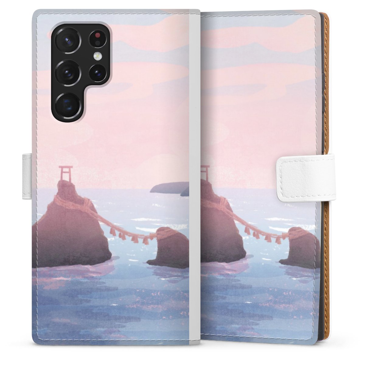For our Sideflip Case we are using our advanced direct printing technology. The back and frontside are fully printabale, the inside of the phone bag is left unprinted. You can order the phone case without print, printed completely or also with a partial print.