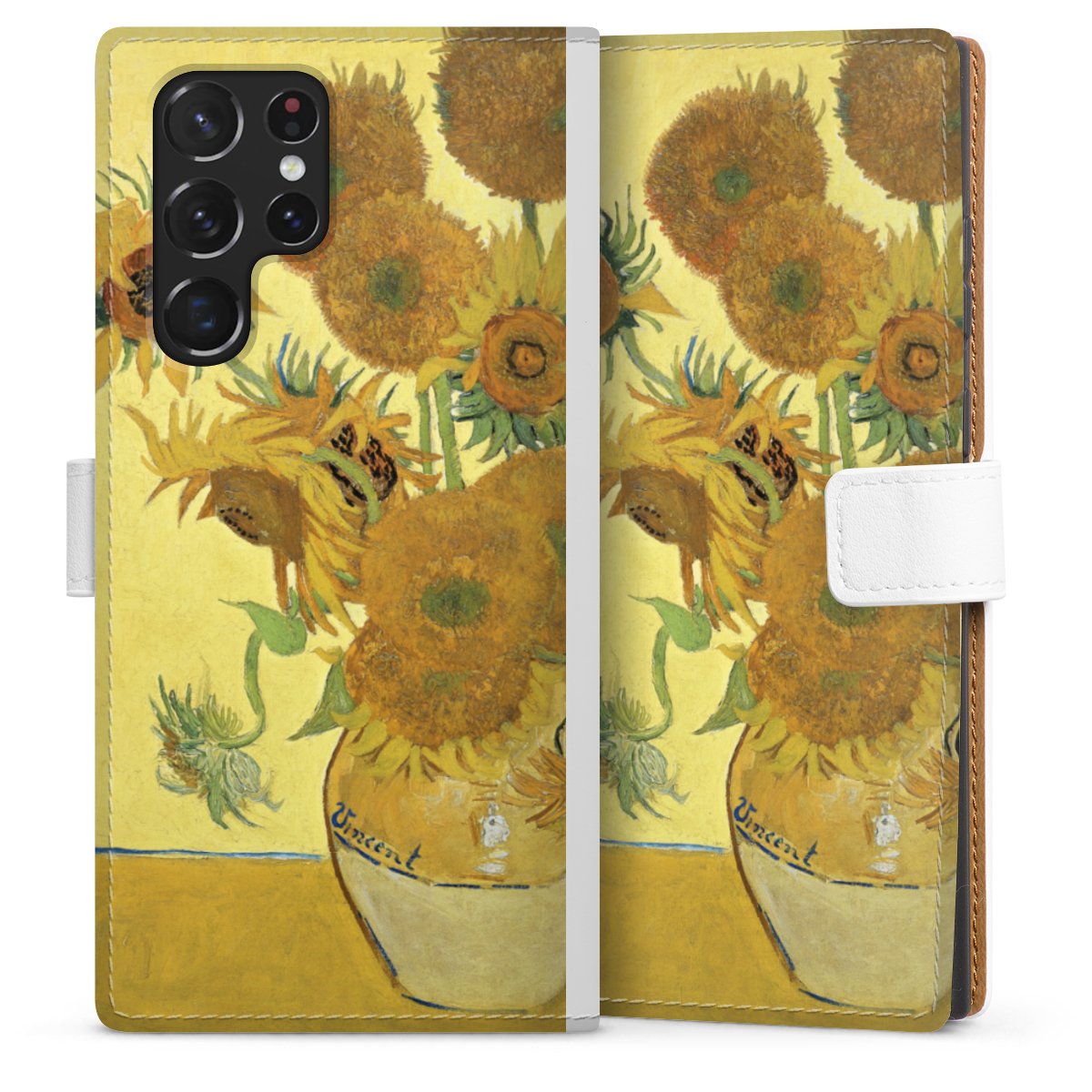 For our Sideflip Case we are using our advanced direct printing technology. The back and frontside are fully printabale, the inside of the phone bag is left unprinted. You can order the phone case without print, printed completely or also with a partial print.