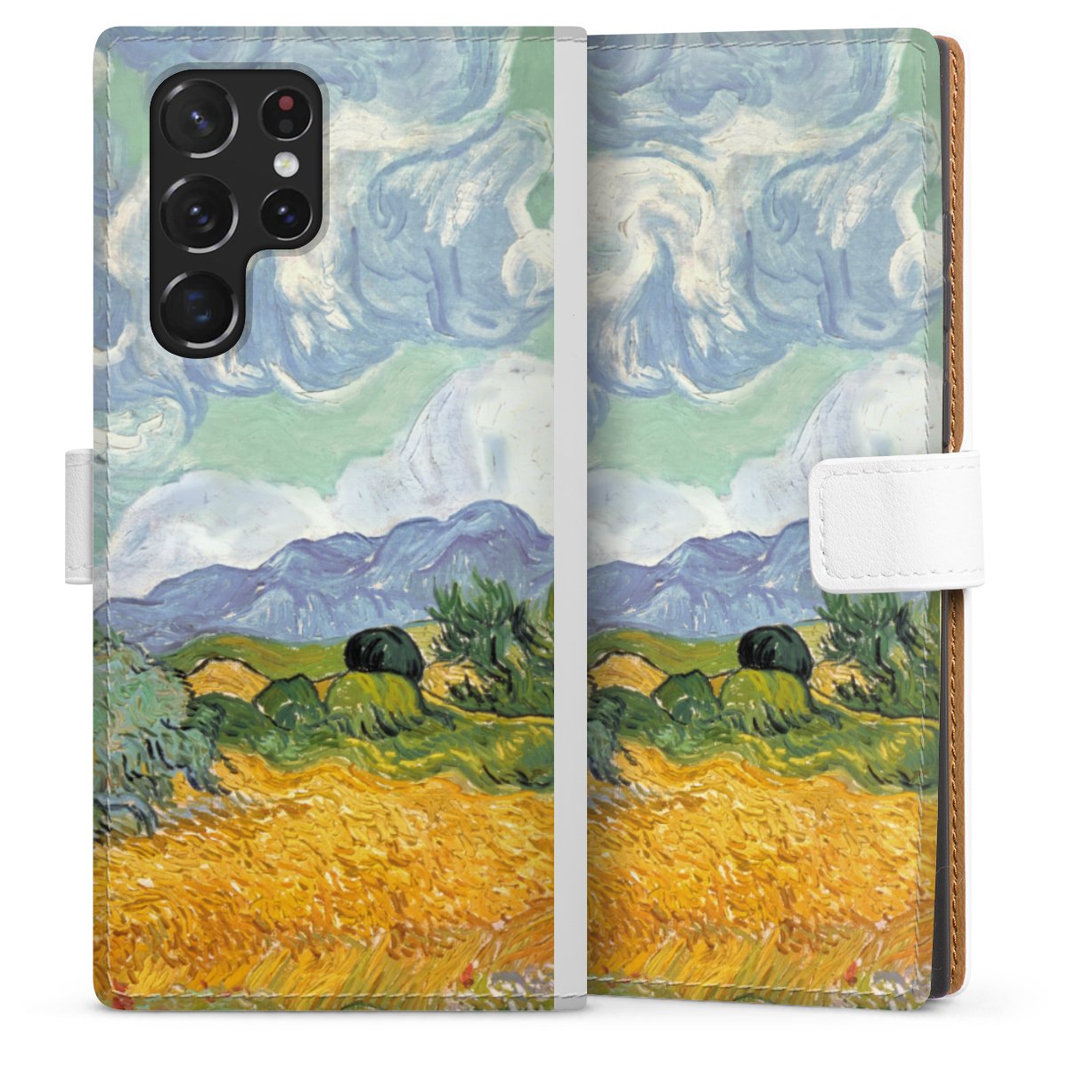 For our Sideflip Case we are using our advanced direct printing technology. The back and frontside are fully printabale, the inside of the phone bag is left unprinted. You can order the phone case without print, printed completely or also with a partial print.