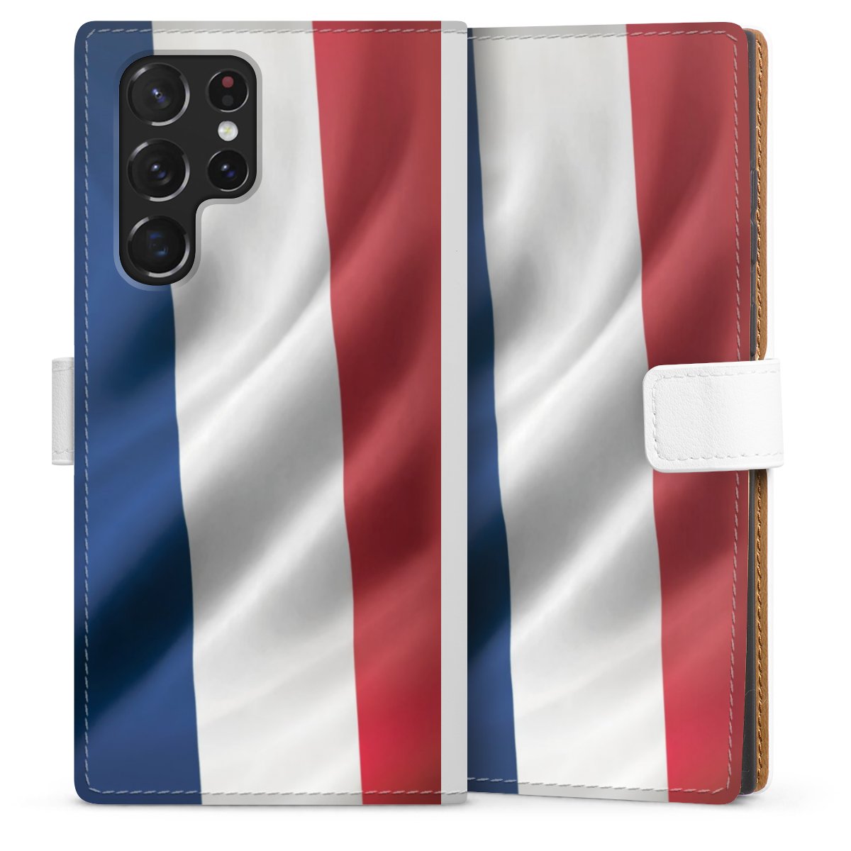 For our Sideflip Case we are using our advanced direct printing technology. The back and frontside are fully printabale, the inside of the phone bag is left unprinted. You can order the phone case without print, printed completely or also with a partial print.