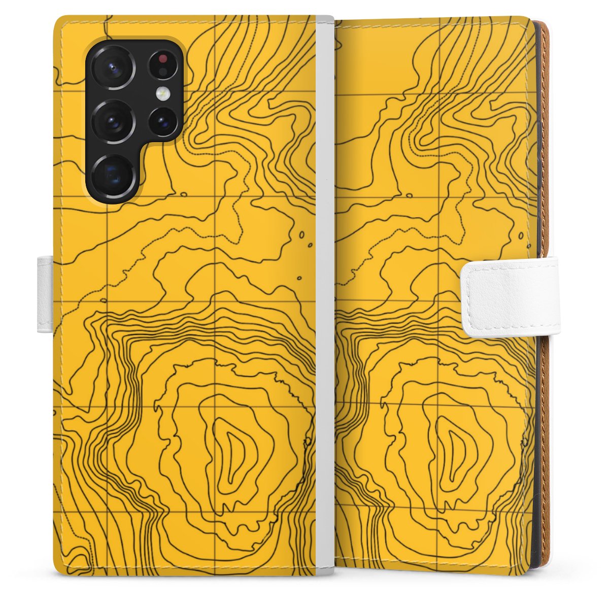 For our Sideflip Case we are using our advanced direct printing technology. The back and frontside are fully printabale, the inside of the phone bag is left unprinted. You can order the phone case without print, printed completely or also with a partial print.