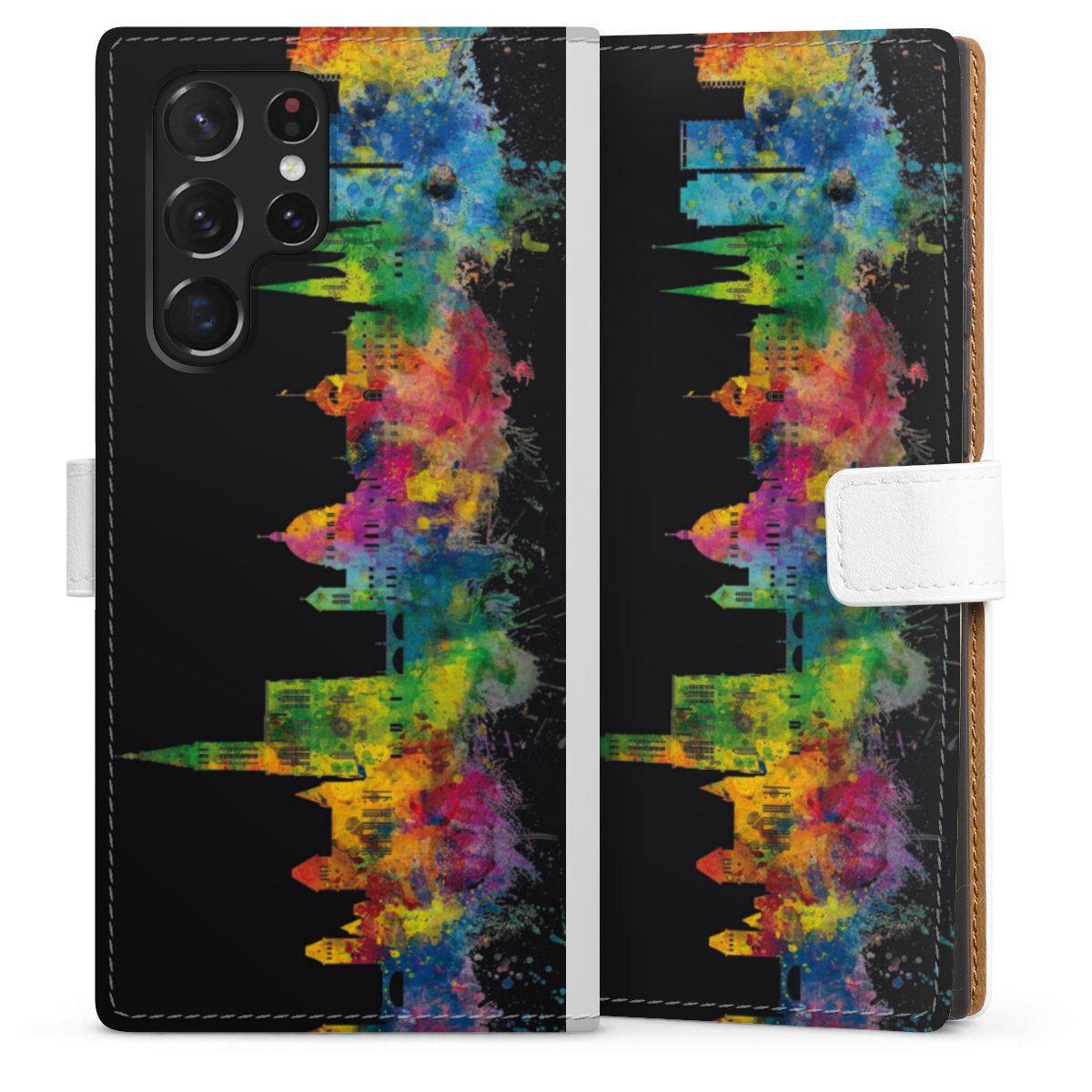For our Sideflip Case we are using our advanced direct printing technology. The back and frontside are fully printabale, the inside of the phone bag is left unprinted. You can order the phone case without print, printed completely or also with a partial print.