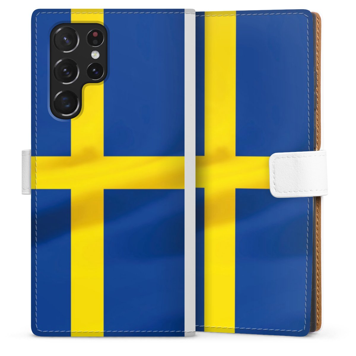 For our Sideflip Case we are using our advanced direct printing technology. The back and frontside are fully printabale, the inside of the phone bag is left unprinted. You can order the phone case without print, printed completely or also with a partial print.
