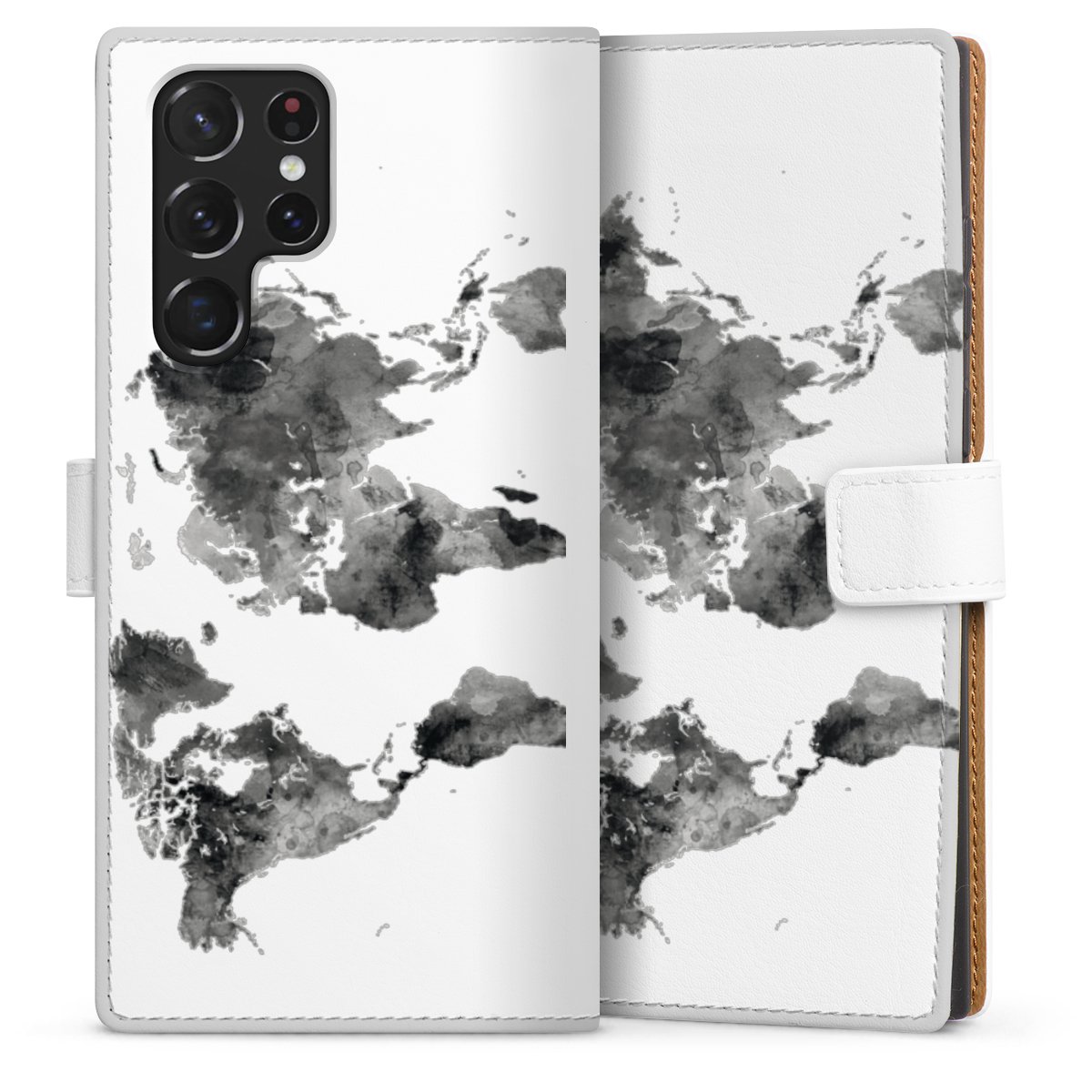 For our Sideflip Case we are using our advanced direct printing technology. The back and frontside are fully printabale, the inside of the phone bag is left unprinted. You can order the phone case without print, printed completely or also with a partial print.