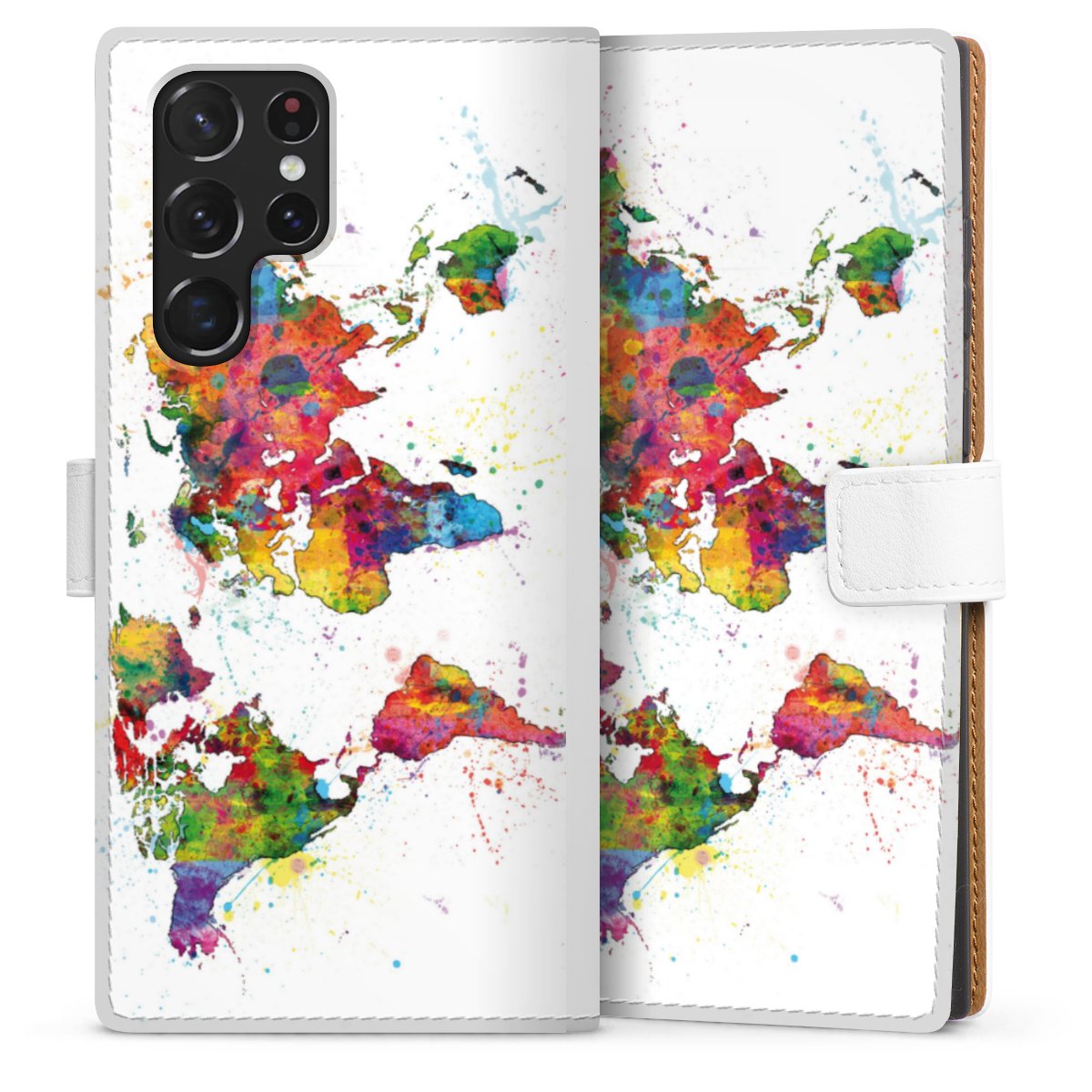 For our Sideflip Case we are using our advanced direct printing technology. The back and frontside are fully printabale, the inside of the phone bag is left unprinted. You can order the phone case without print, printed completely or also with a partial print.
