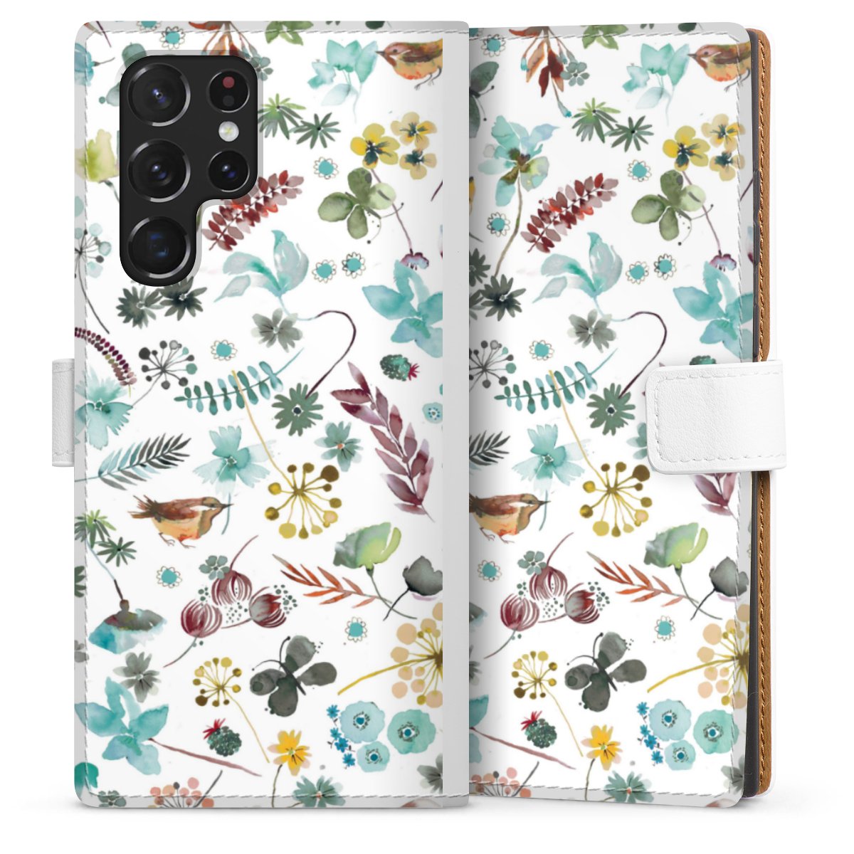 For our Sideflip Case we are using our advanced direct printing technology. The back and frontside are fully printabale, the inside of the phone bag is left unprinted. You can order the phone case without print, printed completely or also with a partial print.