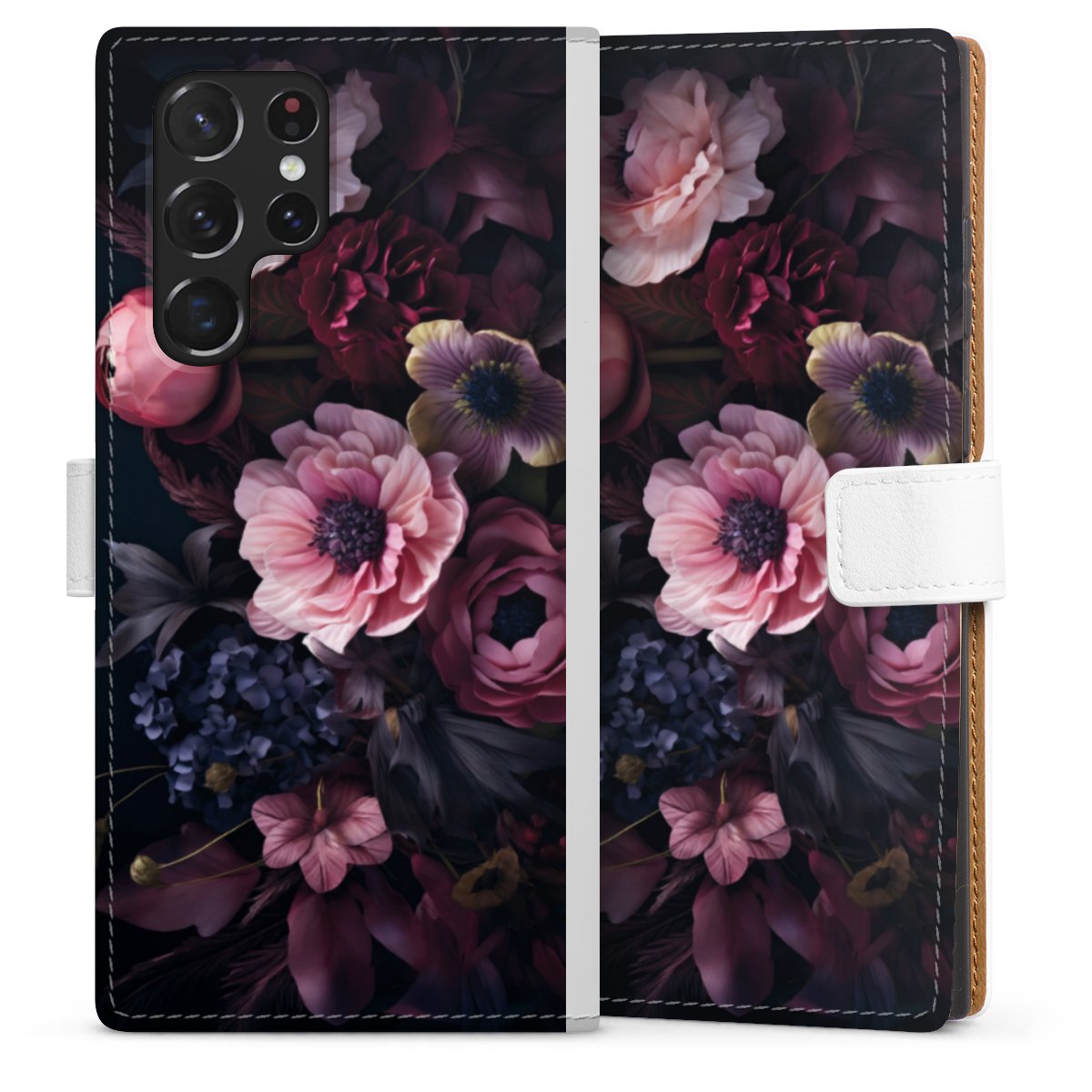 For our Sideflip Case we are using our advanced direct printing technology. The back and frontside are fully printabale, the inside of the phone bag is left unprinted. You can order the phone case without print, printed completely or also with a partial print.