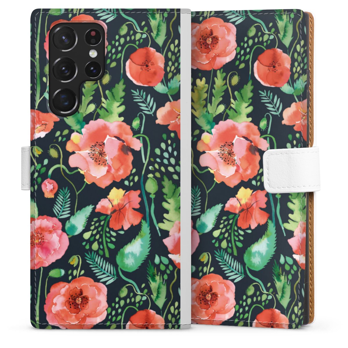 For our Sideflip Case we are using our advanced direct printing technology. The back and frontside are fully printabale, the inside of the phone bag is left unprinted. You can order the phone case without print, printed completely or also with a partial print.